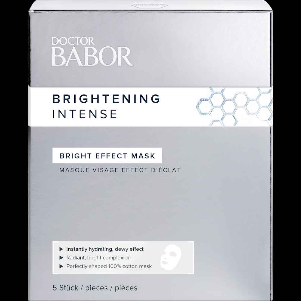 Contains 5 Sheet Masks The perfectly shaped Bright Effect Mask is 100% cotton infused with powerful radiance enhancing ingredients that gives skin a brighter-looking, glowing complexion in 15 minutes. EXP Bright-Complex plus a blend of Sulforaphane rich Cress Sprout Extract and Bioactive Soybean Is...more