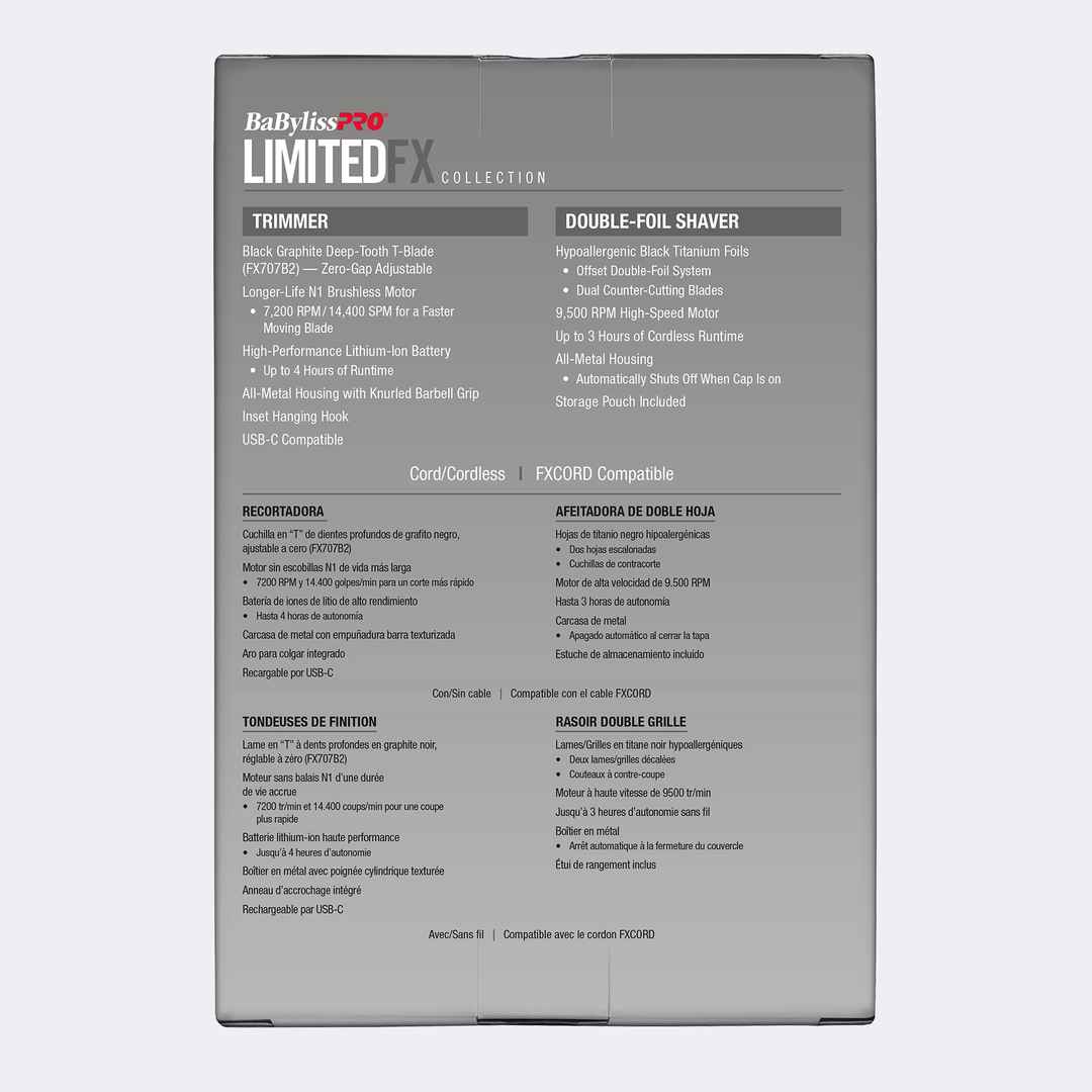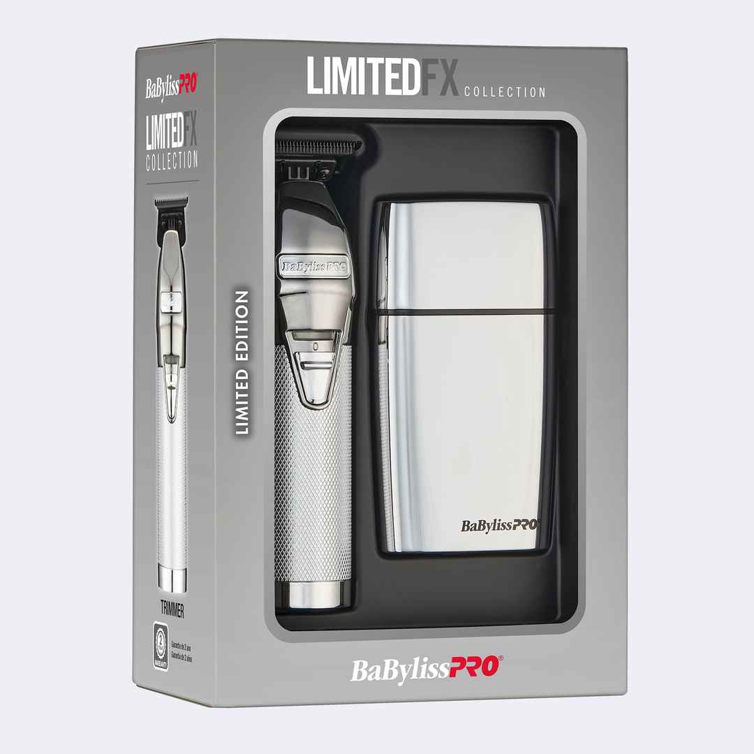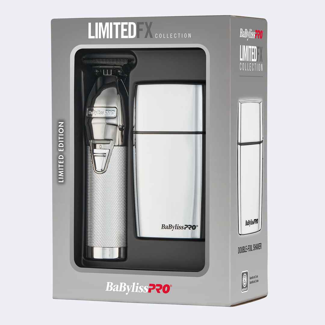 The LimitedFX Silver Trimmer & Double-Foil Shaver Gift Set offers two professional hair styling tools in one. High-performance, metal housing, by BaBylissPRO. | BaBylissPRO Silver Trimmer & Double-Foil Shaver