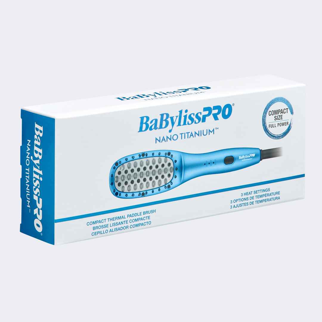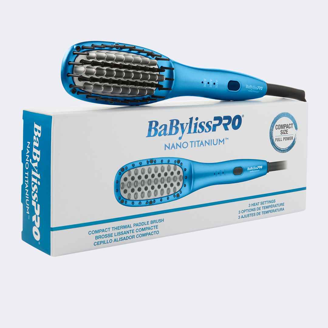 The Nano Titanium Compact Thermal Paddle Brush offers exceptional styling versatility and efficiency for smooth, shiny hair. Its Nano Titanium-coated bristles glide effortlessly through hair, smoothing and imparting radiant shine while maintaining hair volume, making it ideal for various hair textur...more