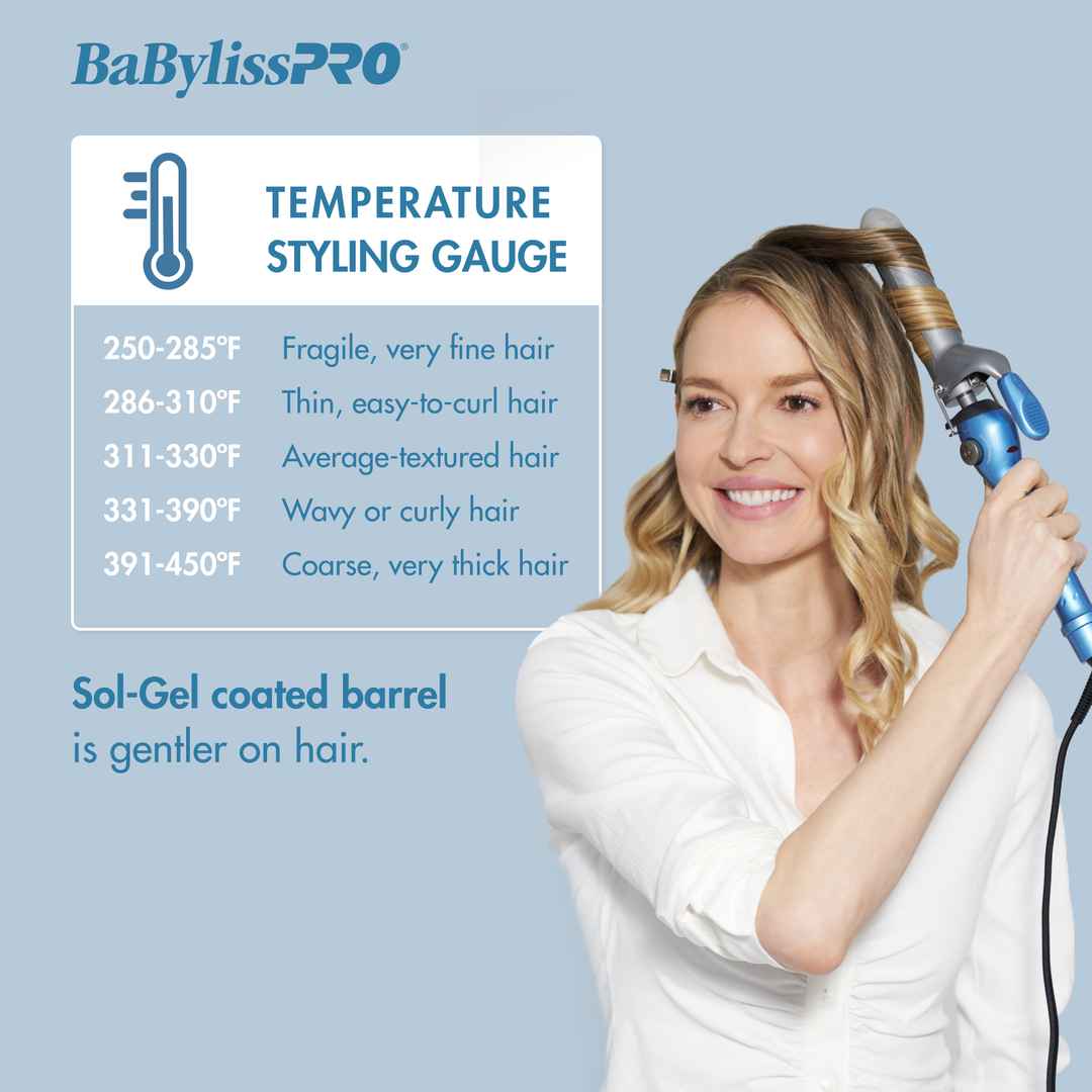 For waves of the future, choose the Nano Titanium 1 1/4" Spring Curling Iron. The Nano Titanium 1 1/4" Spring Curling Iron creates larger, looser curls and waves, perfect for styling longer hair lengths or for those who desire softer, more relaxed curls. The larger barrel size allows for quicker sty...more