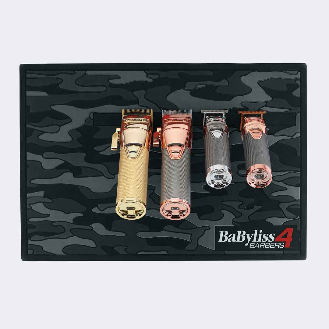 Elevate your workspace with the Black Camo Magnetic Strip Barber Mat. This mat offers a stylish and functional addition to your barber station. Hold up to four clippers and trimmers in place. The magnetic strip ensures secure placement of your tools, keeping them organized and within easy reach whil...more