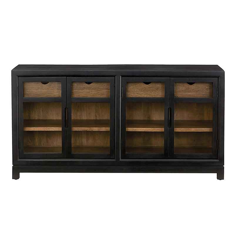 "Our handsome Lavella Sideboard makes serving a hungry crowd look deliciously easy. The rustic black case features glass panel cabinet doors with integrated handles, creating a light-filled showcase for all of your go-to entertaining needs. Inside the warm, honey stain interior, two deep drawers on ...more