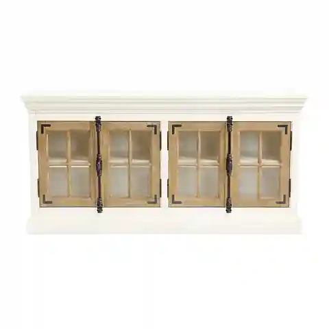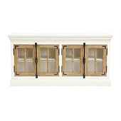 "The Salerno Glass Door Console's design is based on a favorite antique from our own collection. Double French casement doors with tempered glass panes allow remotes to work, so you can use it as media console. Doors secure with vintage bar latches. Cream finish features Oak door panels.Sa...more