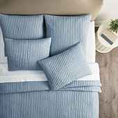 Nelle Channel Stitched Silk Quilt - Cornflower, King - Ballard Designs