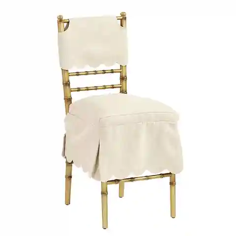 "Pretty comfort for your guests from entertaining expert, Bunny Williams. She designed this short scalloped skirt slipcover to fit our best-selling Ballroom Folding Chair. Hand finished with deep foam seat insert.Bunny Williams Ballroom Chair Short Slipcover features: