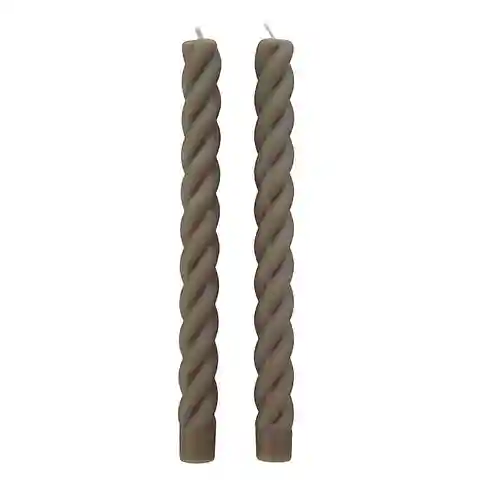 "Romantic light and texture for your tabletop, buffet console, and mantel. These elegant Twisted Taper Candles are handmade of dripless, unscented paraffin. The gorgeous range of decorative colors coordinate beautifully with our favorite fabrics and table decor. Each taper candle is 10-inches tall a...more