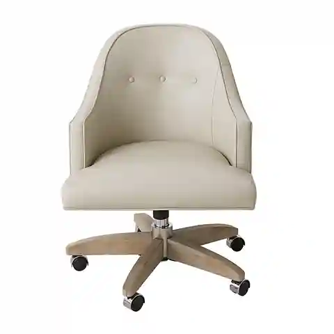 "Not too feminine or too masculine, our Tatum Desk Chair has the contemporary style, superb comfort and practical function you look for in a fine leather desk chair, but rarely find. Hand upholstered in supple stone leather, the cozy barrel back and wide comfy seat make those long workdays feel a li...more