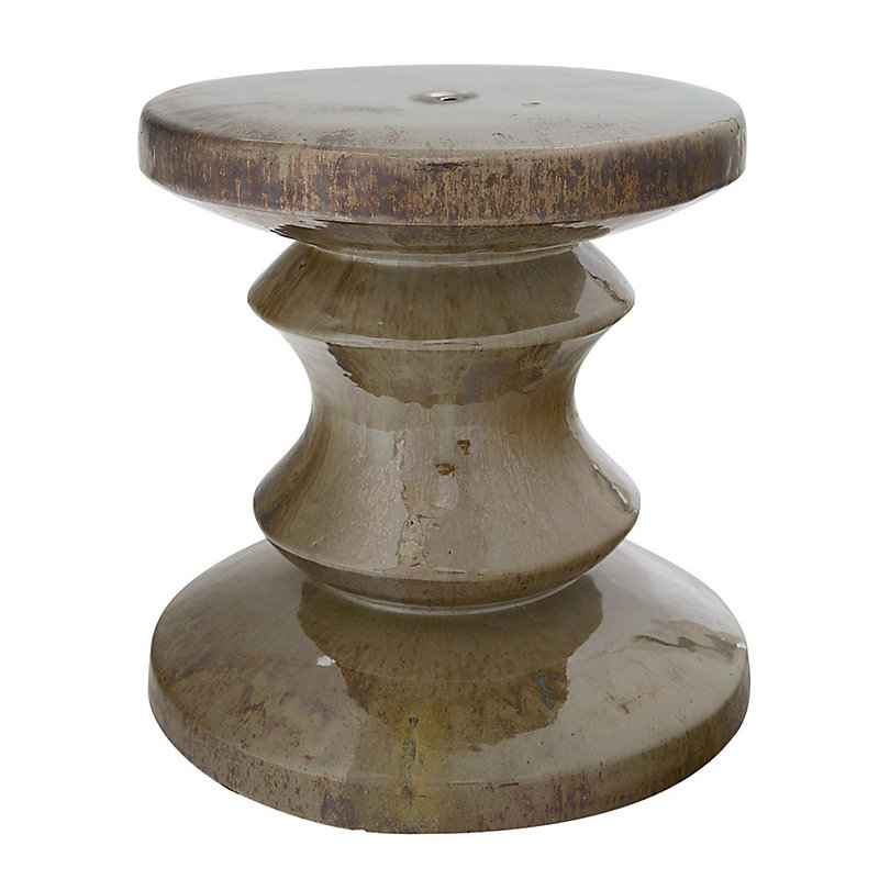 "Earthy organic color to warm your indoor and outdoor living spaces. Our Teah Garden Stool is artisan crafted of durable stoneware in a shapely spool silhouette and hand finished with a lustrous glaze rich in shades of antique moss and mushroom. The proportions make it perfect for a small side table...more