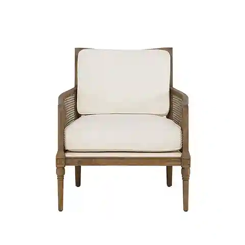 "With its relaxed lines and airy caning, our inviting Wimberly Cane Chair encourages you to linger a little longer. This casual arm chair is hand crafted of hardwood with hand woven caned arms and back. Arms have a slight outward curve that gives the generous seat even more room. Deep seat and back ...more