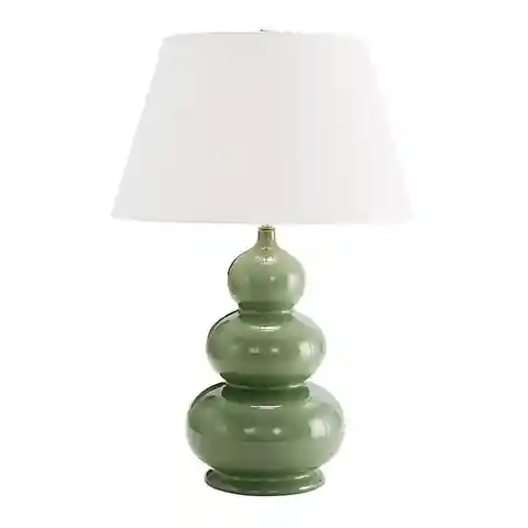 "A triple version of Suzanne's best-selling Gourd Lamp. The fun colors were inspired by tiny scent bottles she picked up at a Paris flea market and give this large, organically shaped lamp a fresh modern attitude. Suzanne finishes the look with her Essential White Linen Lamp Shade, bringing in crisp...more