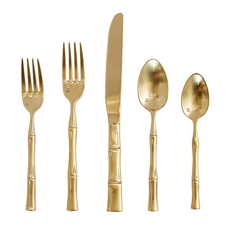 Perrie Bamboo 20-Piece Flatware Set - Champagne - Ballard Designs
