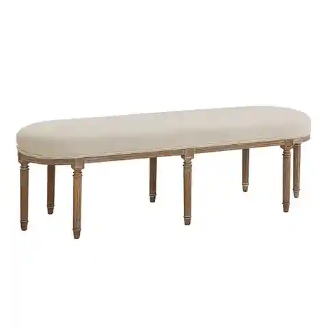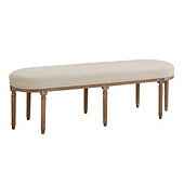 "Elegant seating in the timeless Louis XVI style. Our Madeline Upholstered Bench is hand crafted of solid limed oak in a graceful oblong silhouette with fluted apron, eight simply turned legs, and refined corner blocks. The updated look blends effortlessly with any decor, and works beautifully as an...more