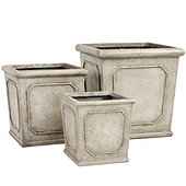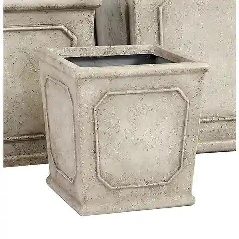 "Designed in the simple, yet elegant Directoire style with classic clipped corner panels. This weather-resistant planter has the elegant look of stone, but without the high price and weight. Crafted of durable, outdoor safe stone composite with a drainage hole and plug in the base.Rodin Square Plant...more