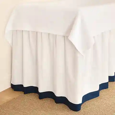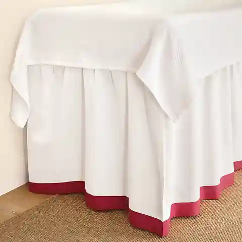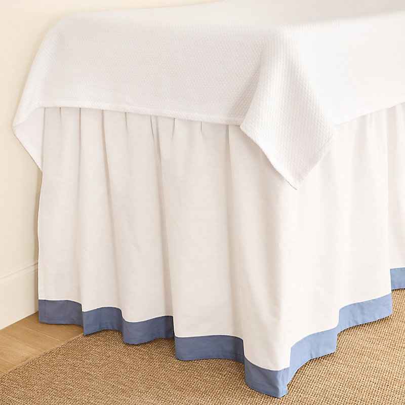 "Make your dorm room feel more like home with our tailored Hannah Paneled Bedskirt. Panels are handmade of white, 100% cotton and finished with your choice of 3"" solid color trim. Each panel includes three sets of ties that secure it to your bed frame, allowing you to adjust the bedskirt to the per...more