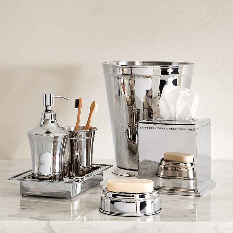 "Our Clarrington Bath Collection embodies classic continental style. Inspired by a set of European antiques, each piece in this sleek bathroom accessories collection is beautifully crafted of stainless steel with refined lines, petite bead details, and hand finished in lustrous silver. Several piece...more