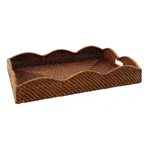 "Scallops are making waves across the design world. Our Piper Woven Scalloped Tray pairs the on-trend look with gorgeous natural texture and color. Beautifully hand woven of rattan with open handles for easy carrying, this versatile serving tray lends warmth and a subtle, organic feel to your coffee...more