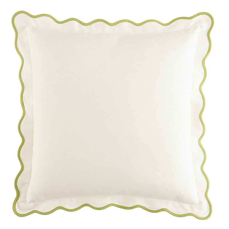 "Scallops are one of our favorite go-to trims, and now you can enjoy the decorative trend outside on your porch, patio, porch, beside the pool. Our Scalloped Outdoor Pillow is made of bright white, weather-loving acrylic and hand finished with a colorful piped scalloped flange. Mix this pretty throw...more