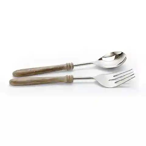 Sturdy fork and spoon set features hand crafted mango wood handles and 18/8 sta...more