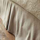 "Add natural texture to your decor with a Ballard Bedskirt. Try a tailored style for clean lines, neutral color, and natural texture. The split corner, kick pleat construction allows the skirt to work on beds with and without corner posts. 16"" drop. Dry clean."
