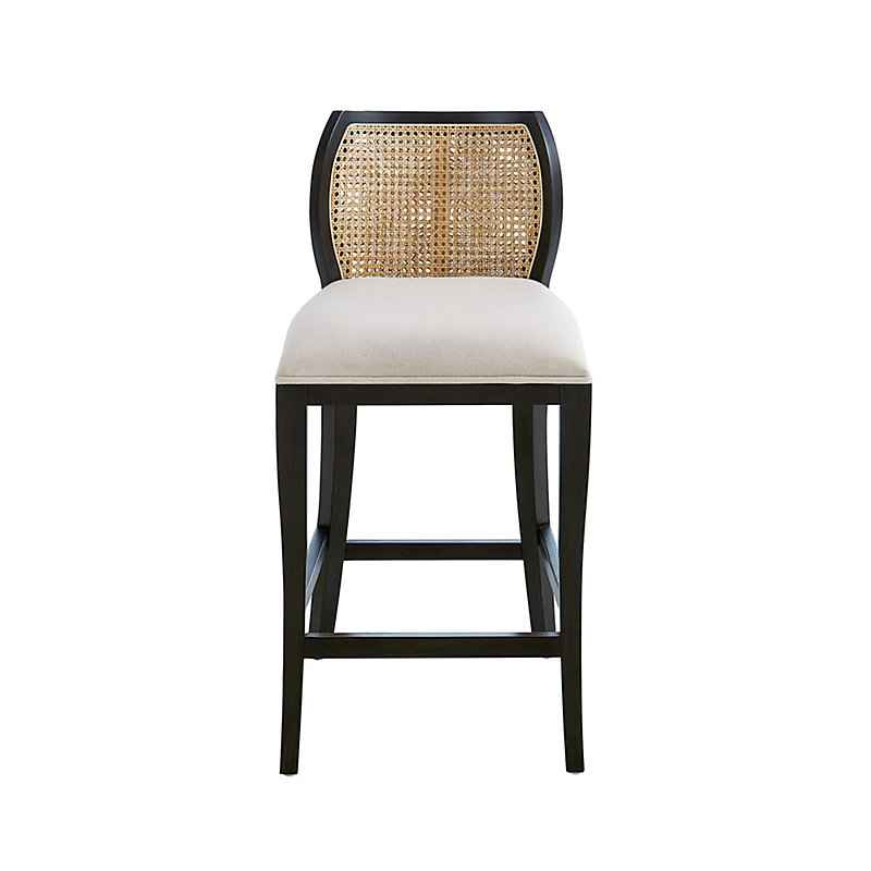 "Our Gilmore Caned Counter Stool is a beautiful blending of natural textures and sophisticated style. The embracing, double caned wings wrap your back at just the right height for lingering comfort and support. Artisan crafted hardwood frame is hand finished in rich espresso. Wide generous seat is d...more
