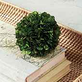 "Forever-green color and natural texture to fill your bowls and vases. This lush preserved boxwood sphere is handmade of real boxwood that's been specially treated to retain its deep green color and soft texture. Preserved Boxwood Sphere features: