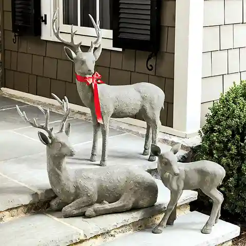 "We found the antique inspirations for these graceful sitting and standing deer sculptures in Europe and had them recreated to capture every natural detail. Each is hand crafted of outdoor-safe poly-clay with a hand applied, weathered stone finish.Montresor Deer features: