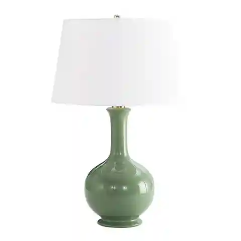 "The fun colors were inspired by tiny scent bottles designer, Suzanne Kasler, picked up on a forage through her favorite Paris flea market. They give the organic gourd shape a fresh, modern attitude. Suzanne finishes the look with her Essential White Linen Lamp Shade, bringing in crisp neutral textu...more