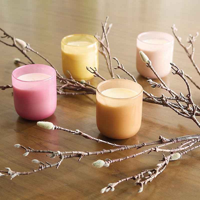 "Fresh fragrances to make someone's day a little sweeter. Our Gift Boxed Candles come in four classic scents, each one a different color: Yellow for Jasmine Vetiver; Light Pink for Santal Rose; Hot Pink for English Rose; and Peach for Orange Blossom. When the candles are spent, the clear glass conta...more