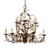 "The Claire has been one of our best-selling chandeliers since we launched it in 2004. The graceful candle arms are entwined with fluid, leaf-laded vines tipped in dozens of faceted cut-glass crystals that catch light from every angle. Claire Chandelier features:Leaf-style candle cups with faux drip...more