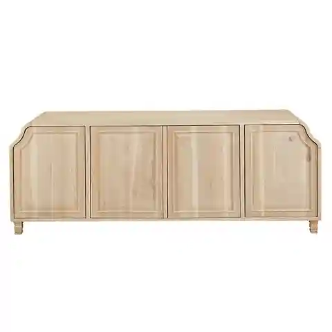 "Graceful curves and richly paneled doors make our Gloria Media Console a design star with subtle feminine allure. With its lower height and generous length, Gloria holds up to an 80"" TV screen at the perfect viewing height. The stylish silhouette is hand crafted of hardwood with four carved panel ...more