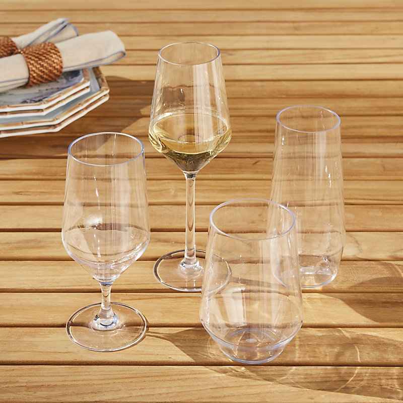 "When you're entertaining outside on the patio, porch or by the pool, broken glass can be hazardous to everyone's good time. Our Veranda Outdoor Drinkware looks and shimmers like delicate glassware, but these worry-free drinking glasses are actually made of durable, shatterproof polycarbonate. You c...more