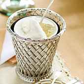 "Designer Bunny Williams hates to see labels on her table, so she designed this pretty basket-style cachepot to disguise a pint carton of ice cream. Removable stainless steel liner catches drips to protect your table. When you're not serving, fill it with flowers or a potted plant.Bunny Wi...more