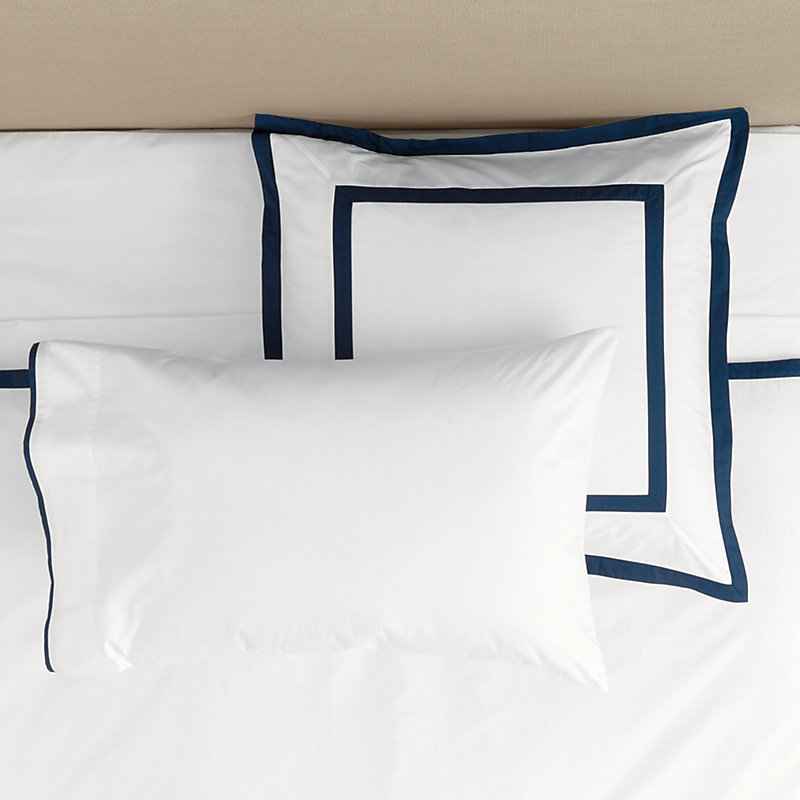 "Suzanne was inspired by vintage color-block bedding she has loved for years. She brought the tailored look forward in her signature colors for easy layering. Suzanne's Positano Pillowcase & Sham Set is made of luxurious 375-thread-count cotton percale. Suzanne Kasler Positano Pillowcase S...more