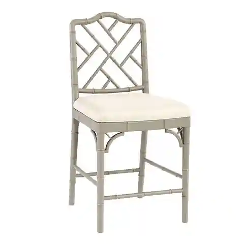 "Our Dayna Counter Stools and Barstools capture the sophisticated soul of Chinese Chippendale styling. Solid beech wood frames are artisan crafted with classic fretwork hand finished with bamboo-inspired turnings. Richly padded slip seats are expertly upholstered in our cleanable, family-friendly Sa...more