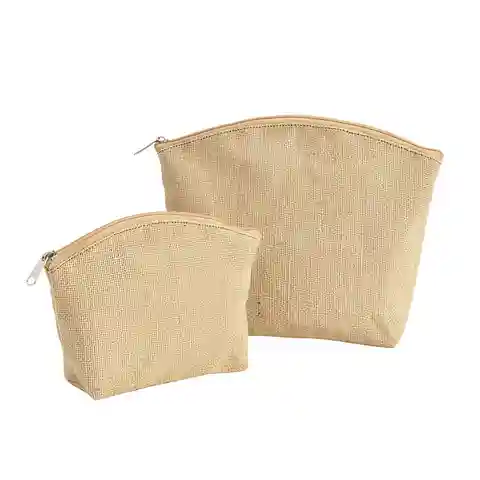 "Some gifts are hard to give away. These pretty cosmetic bags are made of natural jute with gusseted sides, so they hold more and make everything inside is easier to find. Interior is coated in moisture-resistant latex for easy cleaning.Jute Cosmetic Bag features: