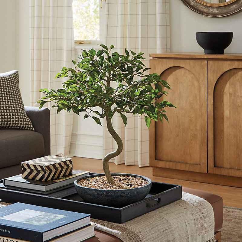 "Our Faux Sculpture Tree is so realistic, youll have to remember not to water it. Inspired by traditional bonsai, this faux banyan tree potted plant decor creates a sculptural centerpiece and sense of serenity wherever its displayed, from your living room coffee table to the bath or home office. The...more