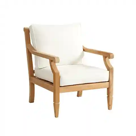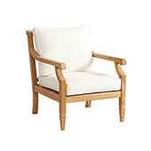 "With its smoothly scrolled arms, crisply tapered legs and gracious proportions, our Madison Lounge Chair has a timeless look designed to last. Part of our Madison collection, it's hand crafted of solid FSC-certified teak, making it naturally resistant to harsh weather and damaging insects. If left ...more