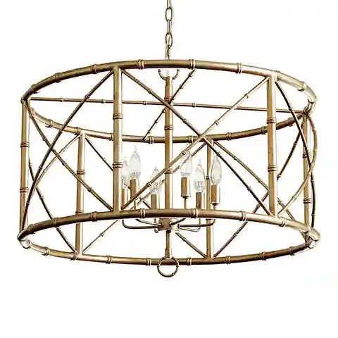 "This light, airy Bamboo 6-Light Chandelier adds global flavor that layers easily with everything from antiques to modern mix. Metal frame has bamboo details and different size stocks for rich visual texture. Drum design allows it to be hung close to the ceiling. Bamboo 6-Light Chandelier features:R...more
