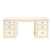 "Our Tuscan Desk pedestal has shallow shelves on one side and two file drawers on the other. Face them in either direction to create a custom combination of open and closed storage. Top's apron fits neatly over the two for a nicely finished look. Tuscan Double Pedestal Desk features: