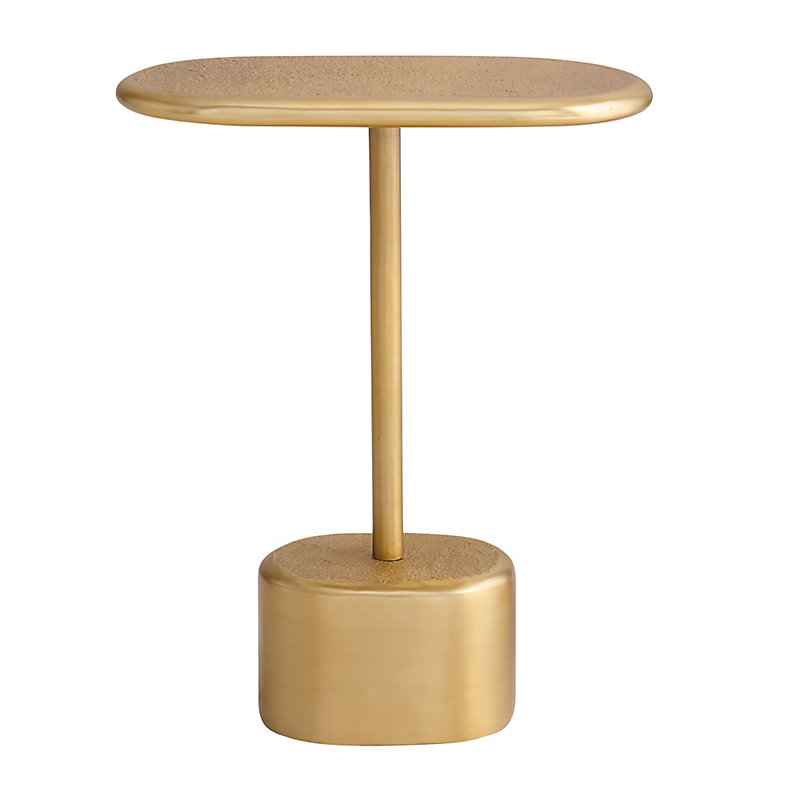 "It's hard to find accent tables that slip neatly between chairs. Our Chase Accent Table does it with sleek contemporary style. The slender silhouette is crafted of cast aluminum with lozenge-shaped top and textured brass finish. Nicely weighted base has felt pad on the bottom to protect your floors...more