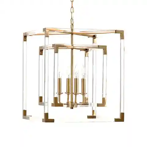 "Great chandelier lighting can transform a foyer, dining room or living area with the flick of a switch. Our Phoebe Acrylic Chandelier features contemporary lines of square acrylic in a cube-in-cube design warmed with classic campaign-style brass accents. Phoebe Acrylic Chandelier features:Made of s...more