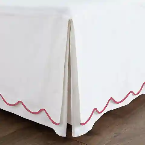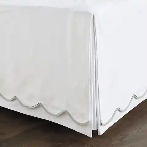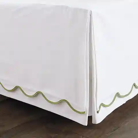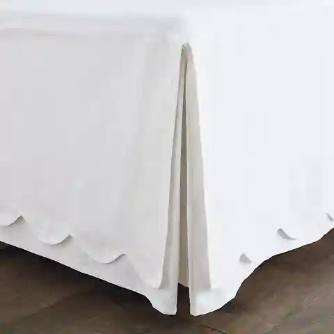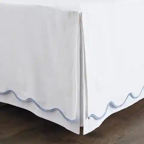 "With its gentle scallops and fresh colors, our Emma Scalloped Bedding layers easily with our favorite sheets and other bedding collections. The Bed Skirt is made of soft 100% cotton twill and finished with crisply tailored corner pleats designed to accommodate corner posts.