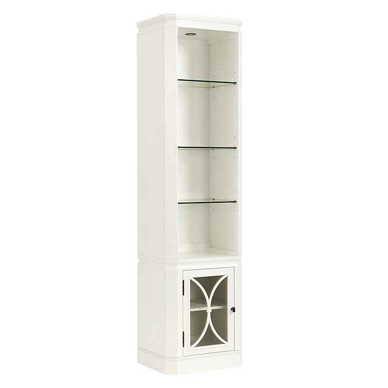 "The Sinclaire Tower combines with our Sinclaire Media Console and Hutch or stands alone. Upper cabinet has three adjustable glass shelves and touch light that adjusts to three light levels. Lower cabinet has one adjustable shelf and reversible swing door to suit your space. Sinclaire Towe...more