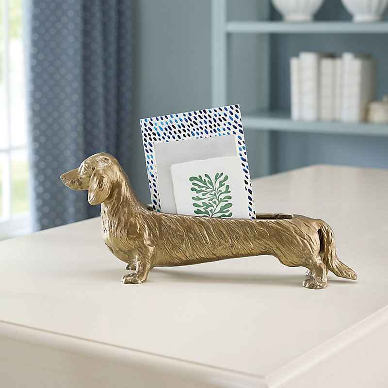 "Our playful Dachshund Organizer makes it easy to find and fetch your active files right from your desktop. The fun silhouette is sculpted of aluminum with warm brass finish and a hidden slot along its back to hold letter-size files, pens, or note pads. Dachshund Organizer features: Great gift for...more