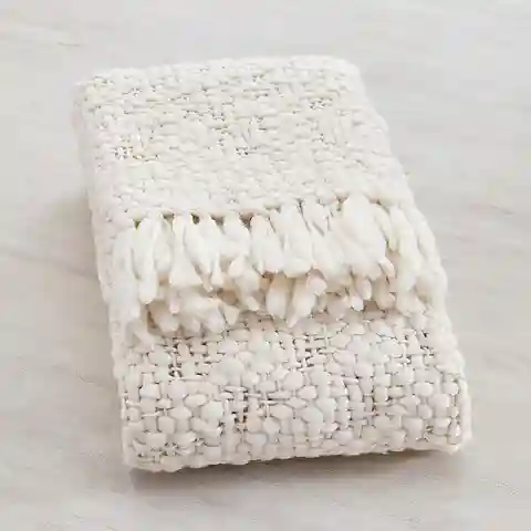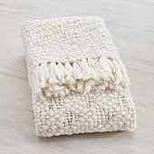 "Soft color and cozy texture to warm up your bed, chaise or sofa. Our Moab Chunky Knit Throw blanket is hand woven of wool and acrylic and finished with a solid ivory cotton back. The organic look and soft ivory color blend beautifully with any decor. Moab Chunky Knit Throw features: Hand spun wool ...more