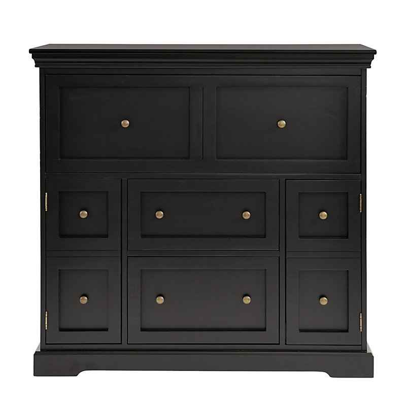 "Behind its finely crafted exterior hides a smartly designed workstation with all the little extras you need to make work quick. Top compartment opens on safety-glide hinges to reveal a spacious workspace and slide-out printer tray. Top center drawer stores supplies. Lower center drawer holds letter...more