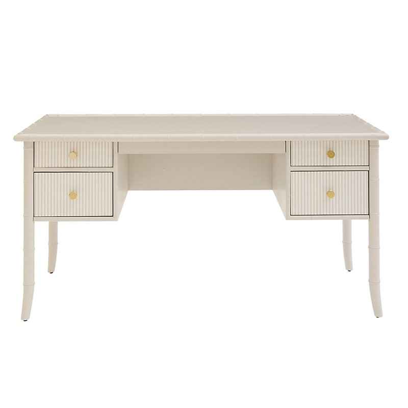 "Our Hawthorn Office Collection takes a warm, light-hearted look at working from home. The classic, bamboo-inspired silhouettes are crafted of hardwood with light taupe finish and hand painted with matching taupe pinstripes on all four sides, so you can appreciate the fashion-forward look from every...more