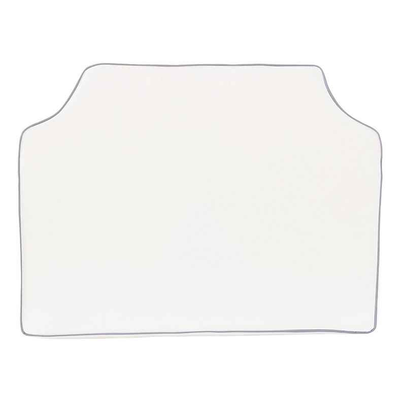"Give your twin bed a crisply finished look with our piped Emily Foam Headboard. The shapely, notched corner silhouette is made of thick, cushy foam and attaches directly to the wall with adhesive Velcro strips, so no tools or mess required. The slipcover is handmade of slubby white cotton and trimm...more