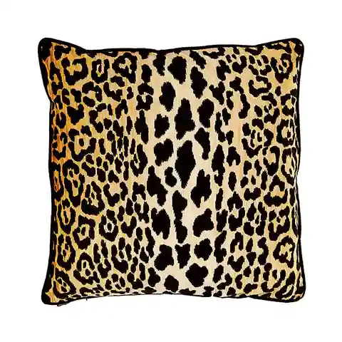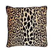 "Pure animal magnetism for your seating or bed top. Our chic, fashion-forward Serengeti Pillow Cover is hand finished in a bold, graphic leopard print on velvety soft cotton with black velvet pipe trim. Serengeti Pillow Cover features: