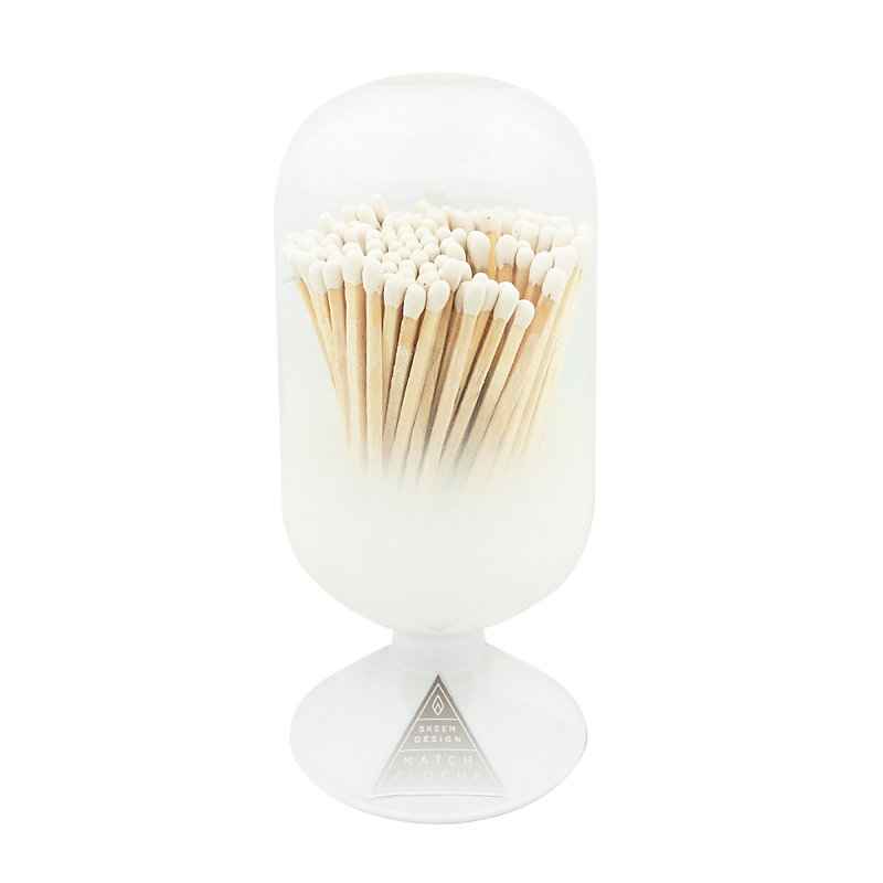 "The unique cylindrical shape is based on a Japanese glass vessel. Designed to accommodate fireplace-length matches, each is hand blown and fitted with a cork stopper in the bottom. Once the included matches are gone, refill it or use the decorative cloche to display a fresh bloom or found specimen....more